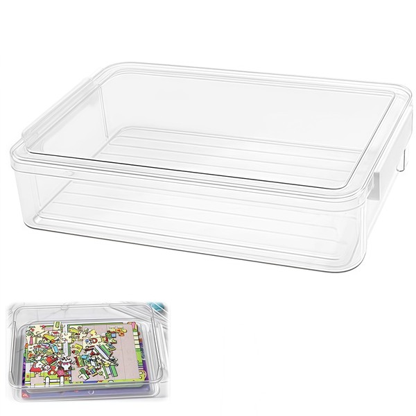 Portable A4 Storage Boxes, WizeFolk Desk Organiser, Stackable with Clear Lid for Documents, Letters, Scrapbooking, Magazines (34 x 23.5 x 7 cm)