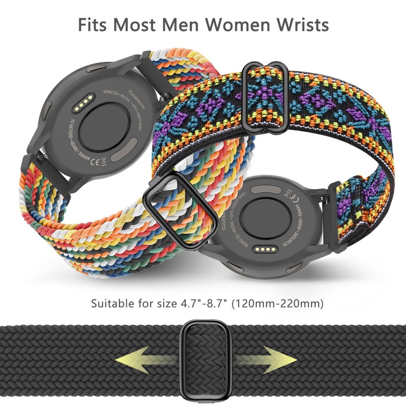 - Compatible models: This 18 mm nylon strap is compatible with Garmin Venu 2S/Vivoactive 4S/Venu 3S/Vivoamove 3S/Forerunner 265S/255S/255S Music; compatible with Fossil Women's Gen 6/5E 42 mm/Q Venture Gen 4 HR/Gen 3/Women's Sports Watch 42 mm, and other brands with 18 mm wide straps. Please check your watch model before purchase
