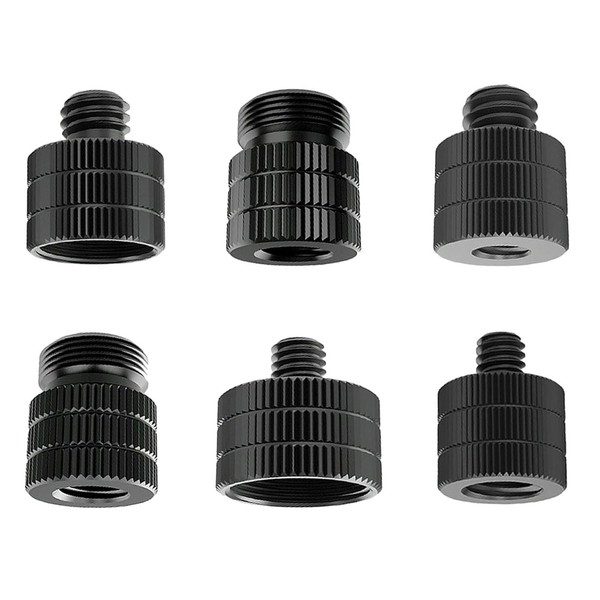 Wjelet 6pcs Mic Stand Adapter, Black Aluminium Alloy Camera Stand Adapter Mic Screw Adapter Mic Thread Adapter, Compatible with All Types Of Tripods Microphones Cameras Stands