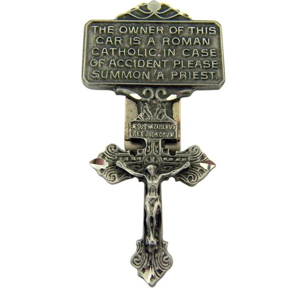 WJH Pewter Pardon Cross Crucifix Visor Clip, 2 7/8 Inch
