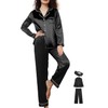 WJing Yi Jia Womens 3Pcs Satin Pajamas Set Silk Pajama Sets XS-3XL Long Silky Pj Sets Nightwear Pjs Set Sleepwear Loungewear Black