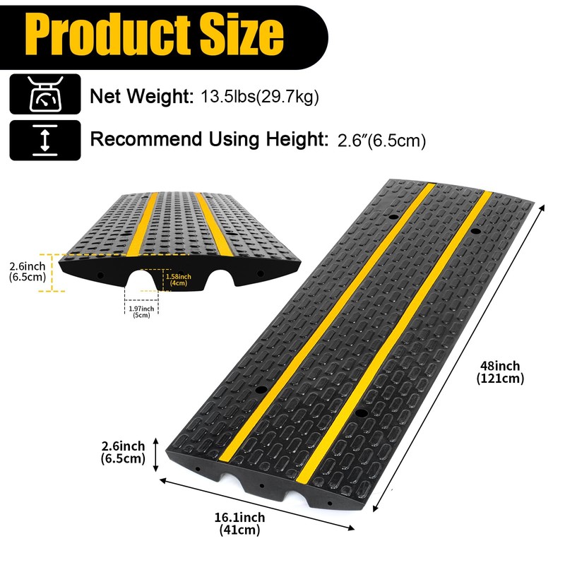 - γπ πππ ππππ πππππ ππππ πππππγ Quantity: 1PACK; Product Size: 48"L x 16.1"W x 2.6"H /122 x 41 x 6.5cm; With 4 bolts to fix on the road and 3 bolts to connect two ramps togather. This ramp easily spans most standard driveway entrances and garage openings for comfortable access. It is frequently employed in settings such as garages, driveways, parking areas,and both indoor and outdoor community environments.