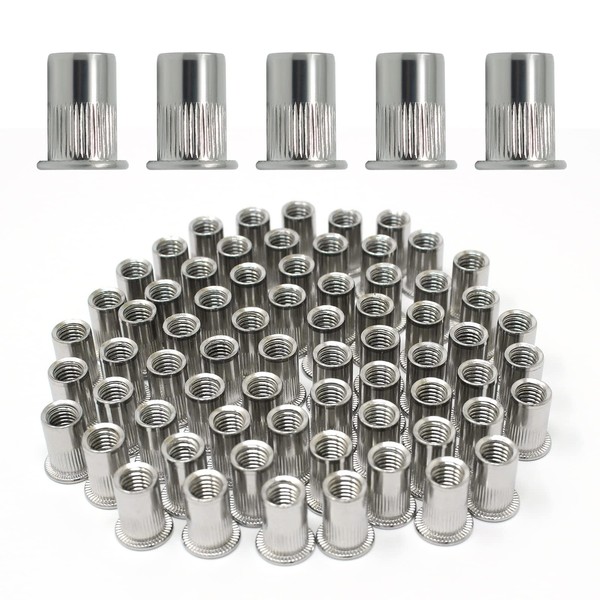 Wkmamo 120 Pcs M8 Rivet Nuts, 304 Stainless Steel Threaded Rivetnut Insert Nutsert, Flat Head Threaded Rivetnut Insert Rivnut Assortment Kit