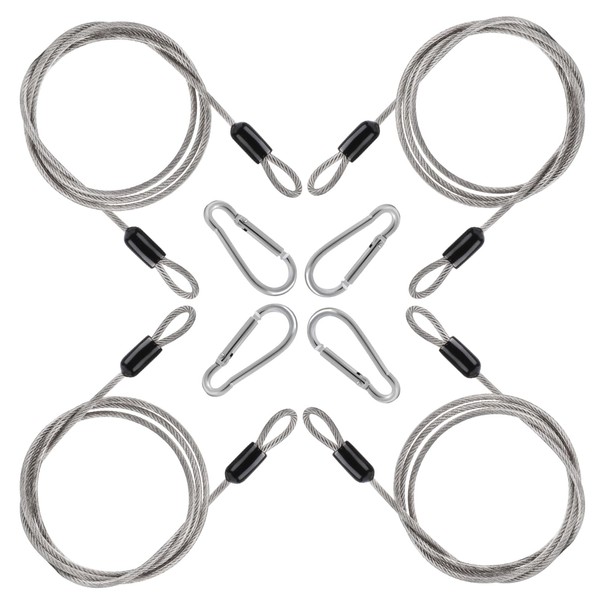 Wkmamo 4 pieces wire cable security cable lock steel cable with eyelets security,With 4 aluminium buckles,Stainless steel security cable, Bicycle wire with hook and loop(1m x 2.5mm)