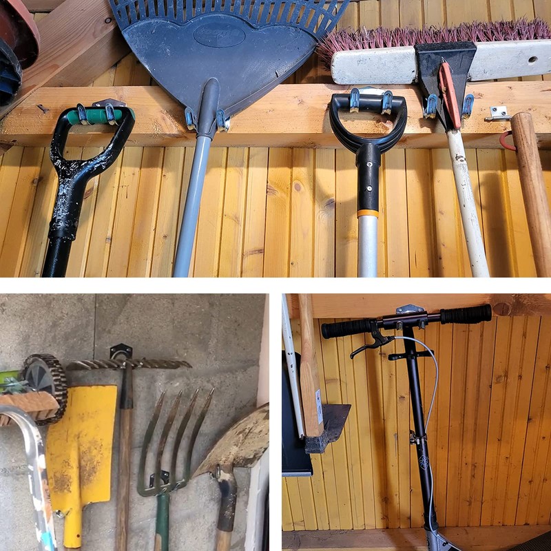 ▷ These garden garage tool hooks are perfect for use in sheds, garages, farms, workbenches, tool storage and workshops as they provide easy storage and easy access to your needed tools.