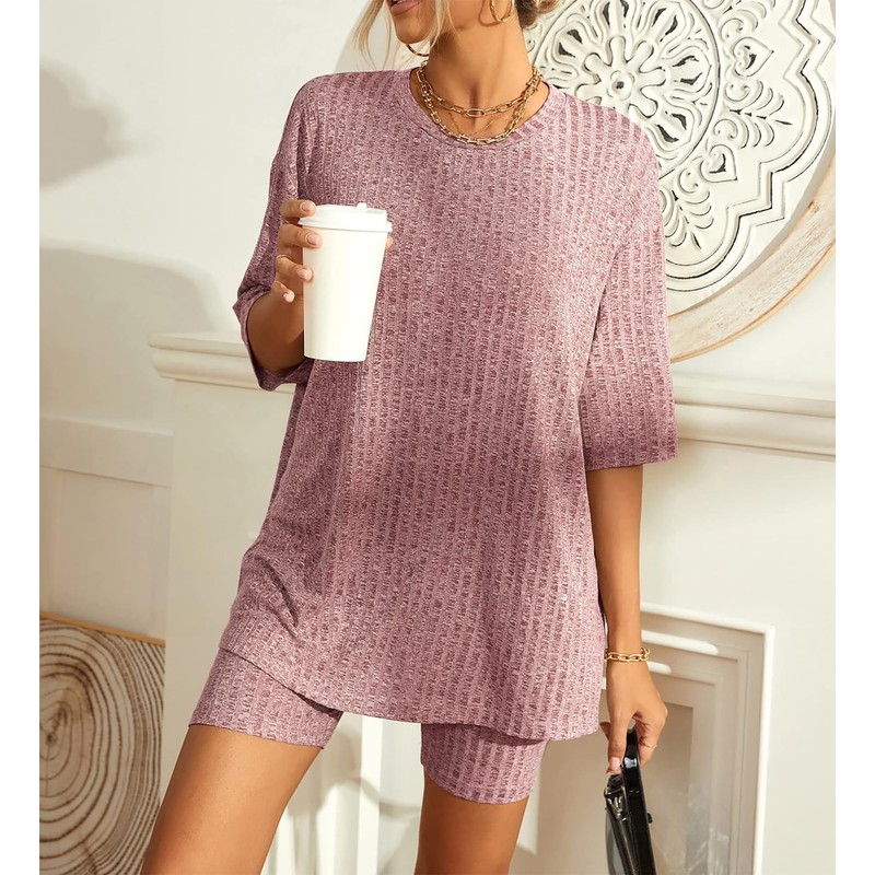 MATCH:Oversized Tops can easily match with skirt, leggings, skinny pants, jeans or als pajama. Biker shorts can be worn with all t-shirts for a casual look. 2 pieces sets match with sneakers, sports shoes perfectly.
