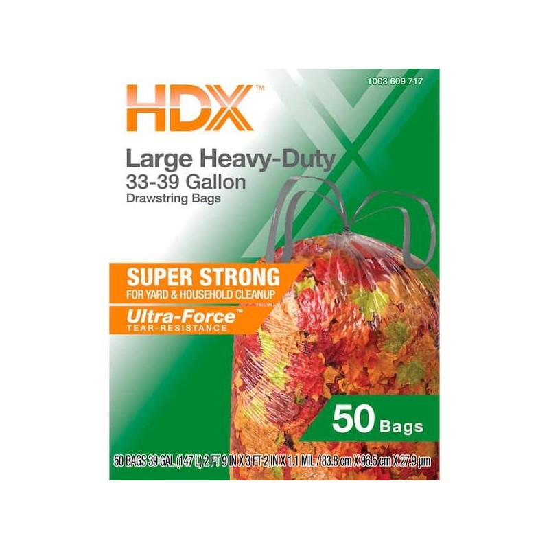 WL01 HDX 33-39 Gallon Clear Flex Drawstring Outdoor Trash Bags with 20% PCR (50-Count)