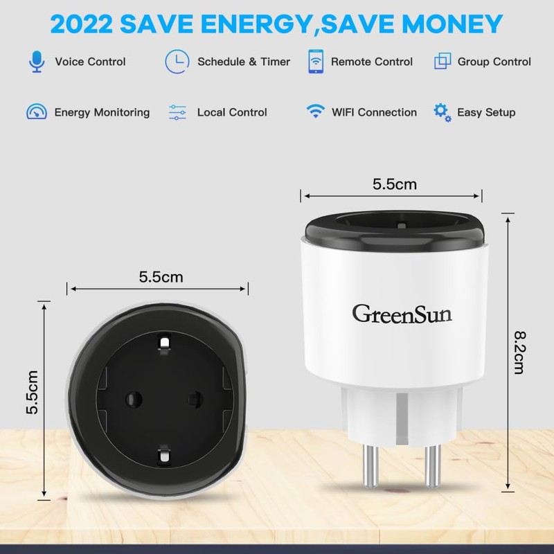 WLAN Socket GreenSun Timer Socket Alexa Socket Power Meter for Socket Smart Life Socket Wifi Socket 2.4GHz 16A Works with Alexa, Google Home, 2 Pieces