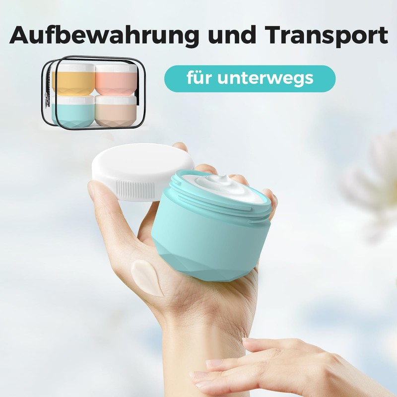 - TSA Approved Travel Bottles: Our portable travel containers are equipped with a wide opening that makes it easier to remove the last rest of the product from the small silicone jar. Silicone cream jars in small size fit in your pocket, handbag, backpack and luggage. You can take it with you when travelling, to the gym, camping, to the beach, etc.