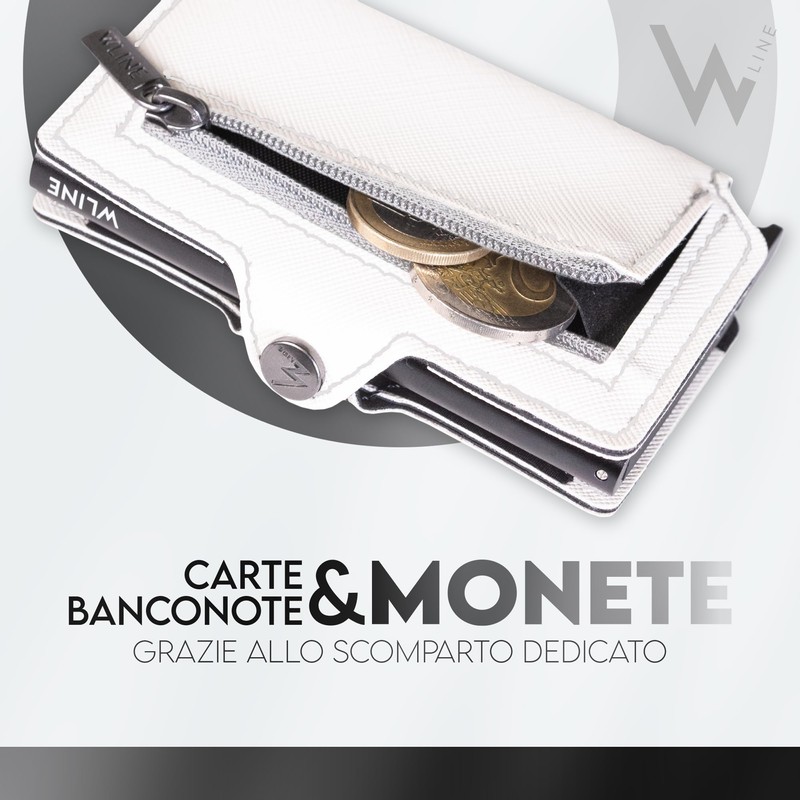 WLine Wallet for Men and Banknote Holder - Wallet with RFID Lock Made of PU Leather, White and Black Saffiano with Zip, White and Black Saffiano, Classic