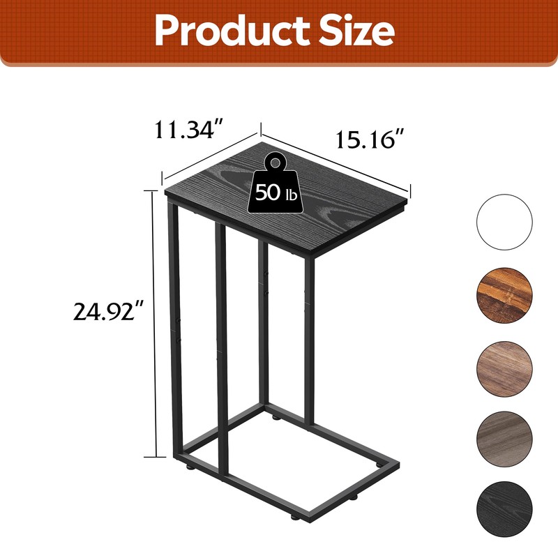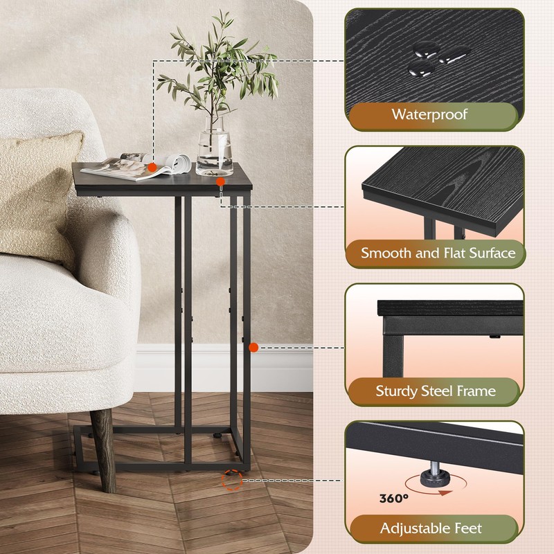 - 【C Shape Table】The C shape side table features steel legs so it can be moved easily when you are eating or working on the sofa or beside the bed. Each C-shaped table has a large table top measuring 18.9"D x 11.8"W and a reasonable 24.4" height, which is perfect for holding a laptop, snacks, coffee, or as a dining table or occasional dining table.