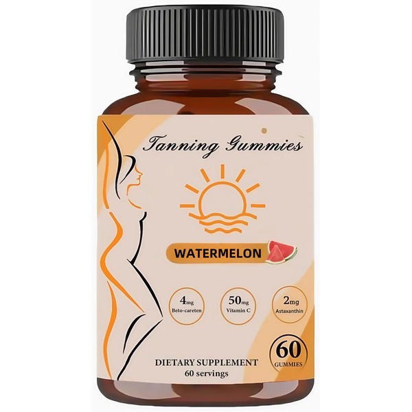 WLLhxyx Tanning Gummies - Daily Gummies with Beta-Carotene & Lycopene & Astaxanthin, Natural Tanning Supplement for Skin Health & Glow, Vegan, Non-GMO, 60 Count (1PC)