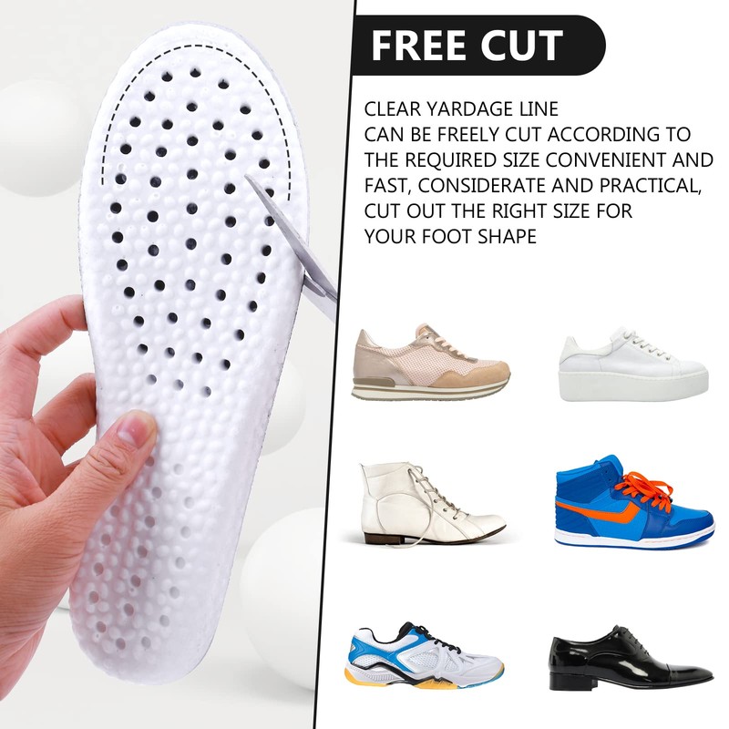 - 【High-quality Material】The shoe insoles are made of high-quality memory foam material, which can provide long-term cushioning and foot support, absorb leg pressure, and provide you with the ultimate comfortable experience