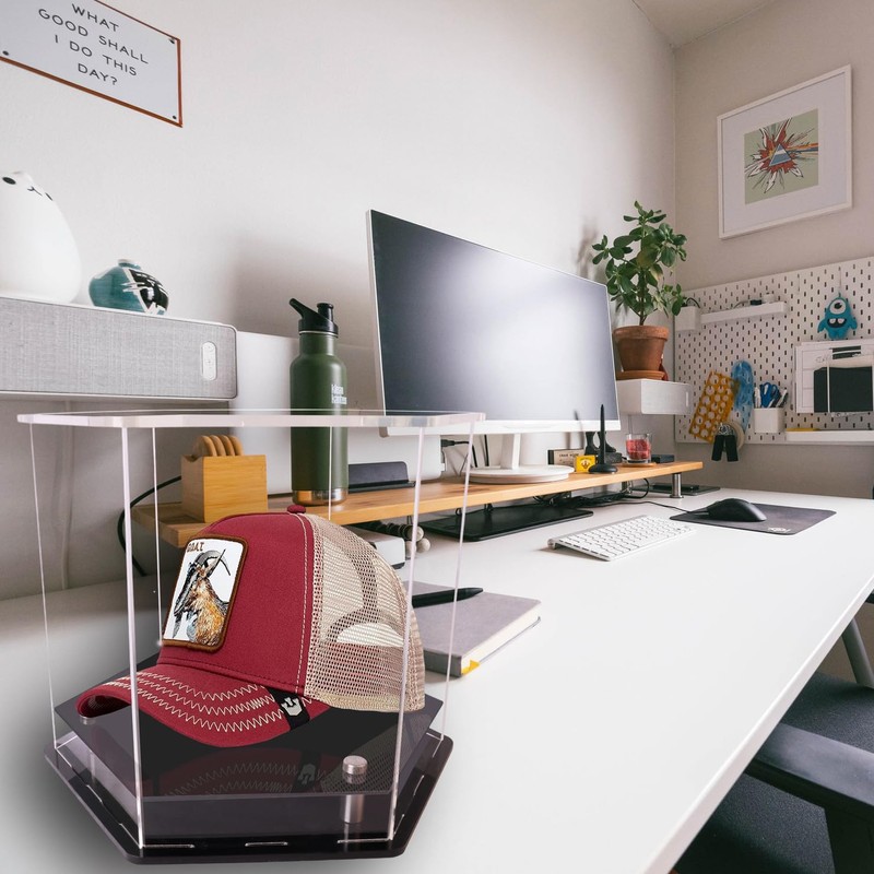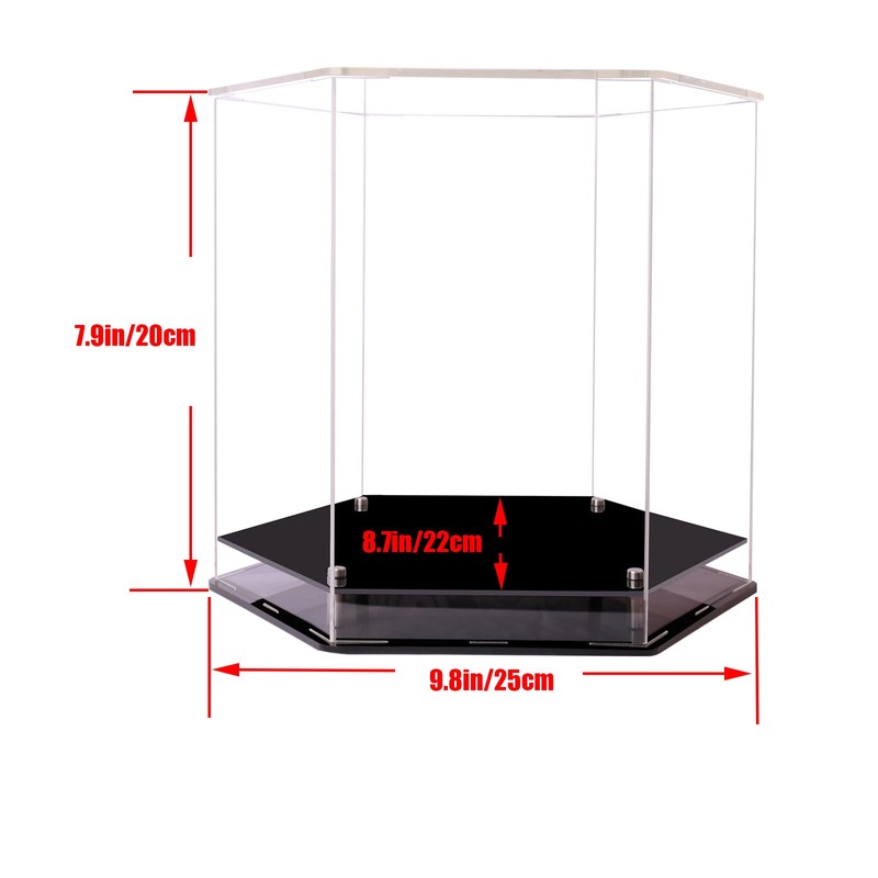 - UNIQUE DESIGN】UNIQUE DESIGN The acrylic display box has a unique six-sided design that allows you to display your soccer helmets and collectibles from multiple angles. Multi-angle display for your hat display and collectibles. Display case measures 10"/25CM x 8.7"/22CM x 7.9"/20CM.