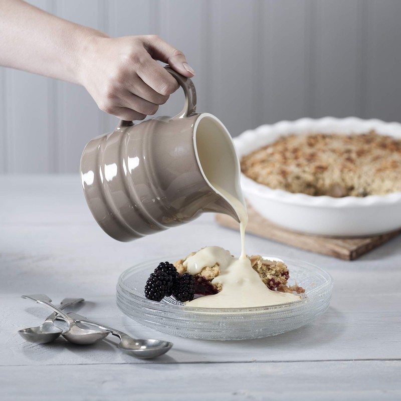 - A premium quality white porcelain ceramic jug. Ideal for serving milk, cream, custard, gravy, water and orange juice. For breakfasts, desserts, tea time or high tea in the garden and drinks.