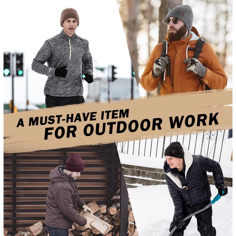 - [Warm Fleece Lined Beanie] Unlike the most beanie, winter ski caps for men are double layered, mens beanies cap has thick fleece lining inside, pretty warm and comfortable, don't be afraid of headache on extremely strong windy days anymore, enjoy your coziness time with family, friends during coldest winter when going out to play.