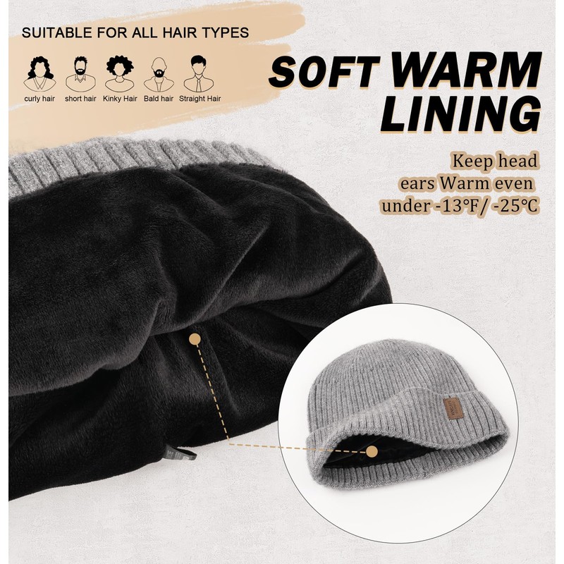 - [Warm Fleece Lined Beanie] Unlike the most beanie, winter ski caps for men are double layered, mens beanies cap has thick fleece lining inside, pretty warm and comfortable, don't be afraid of headache on extremely strong windy days anymore, enjoy your coziness time with family, friends during coldest winter when going out to play.