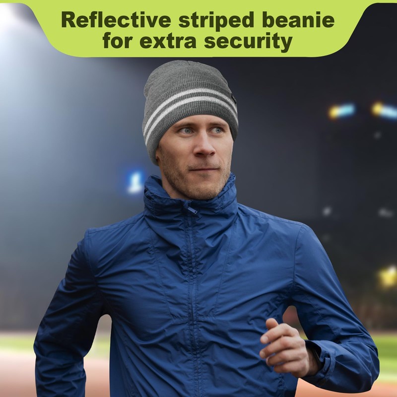 Wmcaps Men's Hat with Reflective Stripes, Unisex Stretch Beanie with Envelope, Windproof Outdoor Winter Hat for Women, Winter Warm Running Hat Gifts for Him or Her, gray