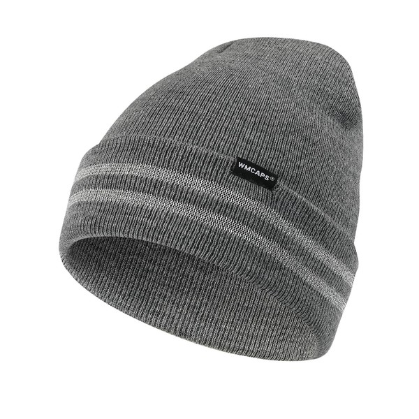 Wmcaps Men's Hat with Reflective Stripes, Unisex Stretch Beanie with Envelope, Windproof Outdoor Winter Hat for Women, Winter Warm Running Hat Gifts for Him or Her, gray