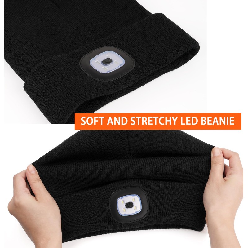 - KEEPS YOU WARM AND ABLE TO SEE IN THE DARK: Made of high-quality acrylic, this fashlight beanie is soft and warm to wear. It is crafted from a highly stretchable material, making it the perfect choice for most men and women. It fits snugly against your skin and conforms to the shape of your head, ensuring it's neither too tight nor too loose. In cold weather, if you need a hands-free bright light in the dark, this practical flashlight beanie can light your way!