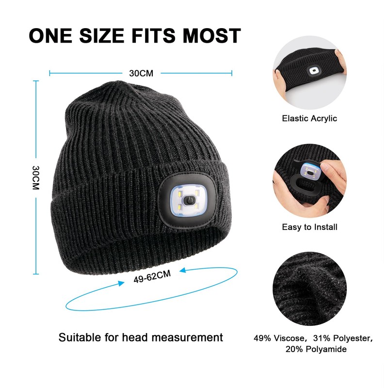 One Size Fits All, with a simple and comfortable built-in light hat design, headlamp hat can bring us warmth.
