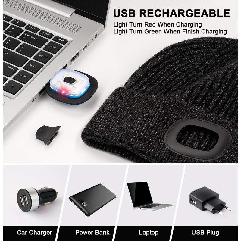 - 【USB Rechargeable Caps】Hat with light provides a standard USB port for battery charging, making it easy for you to charge in your car, computer, or portable power bank. No longer requires purchasing or using other batteries, nor does it require additional charging cables.