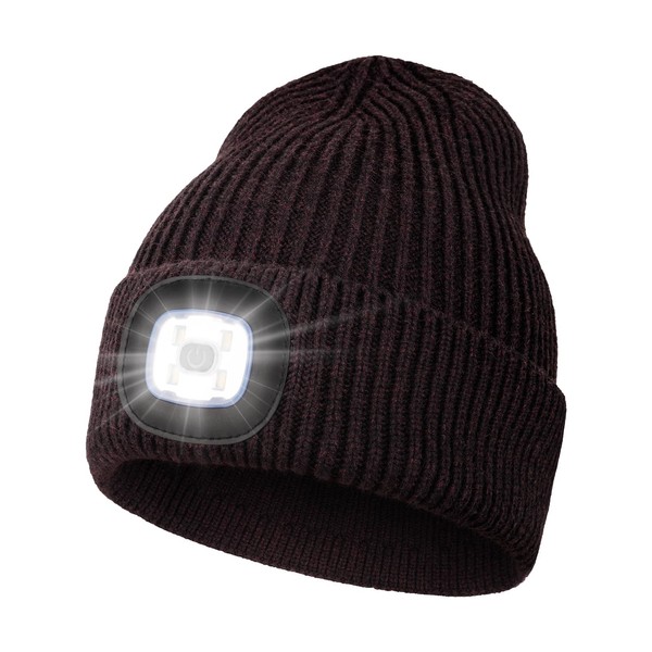 Wmcaps Unisex Hat with Light, USB Rechargeable LED Beanie, Winter Warm Knitted Headlamp Hat Gifts for Men Him Dad Husband