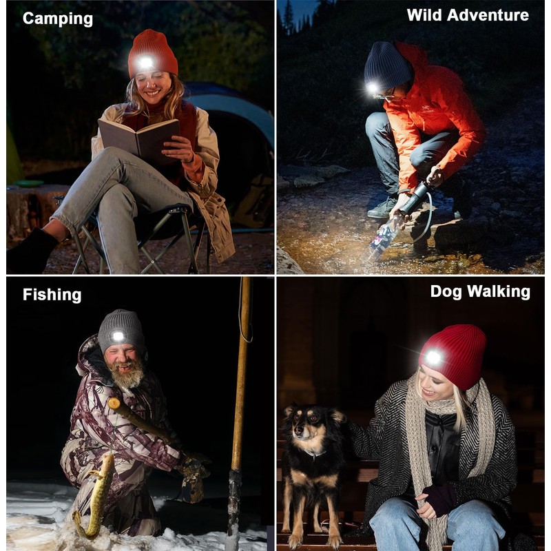 - 【Widely Used】Hands free led lighted hat is very suitable for walking dogs, jogging, skiing, cycling, camping, hunting, fishing, hiking, running, handyman, car repair, home decoration, or any other activities that require hands-free lighting at night or in the morning. LED knit hat is a universal accessory that enhances safety and convenience.