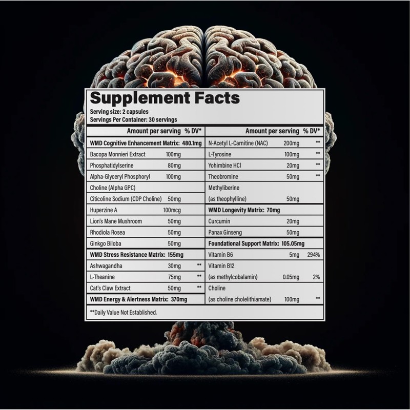 WMD Supplements WMD NeuroFusion Nootropic Brain Supplement ?C Memory, Focus, Mental Clarity & Cognitive Support ?C Gluten Free, Non-GMO, Vegan, Adaptogen Formula ?C?C 60 Capsules