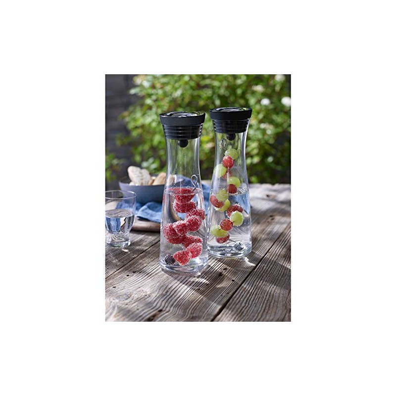 Basics for your household. The basic collection includes everyday items for daily use in the kitchen and also when serving at the table. Sugar dispenser, cream dispenser, honey dispenser, vinegar and oil dispenses in attractively shaped designs. The basic water decanter with the close up lid. It is easy to fill due to the large opening. In addition, there is now also a lid clip that keeps the contents fresh and appetising. Additional cleaning pearls are available for simple cleaning.