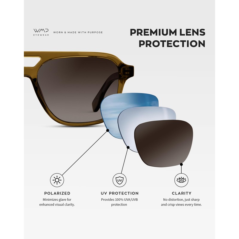 WMP Eyewear – Men’s Polarized Aviator Sunglasses: Double Bridge, Modern Acetate Frame (Crystal Verde/Brown Gradient Lens)