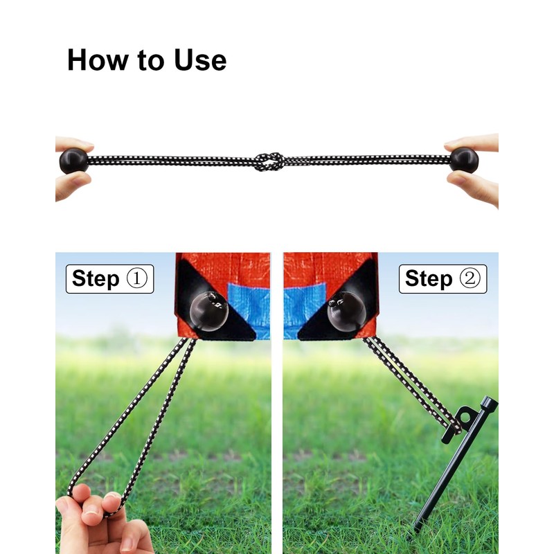 - EASY TO USE: Elastic bungee straps can be easily pulled through the grommet and support, then lock it on the ball. And you can loop multiple small bungees together to make extra lengths.