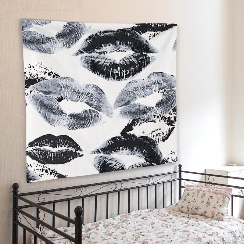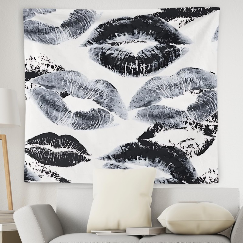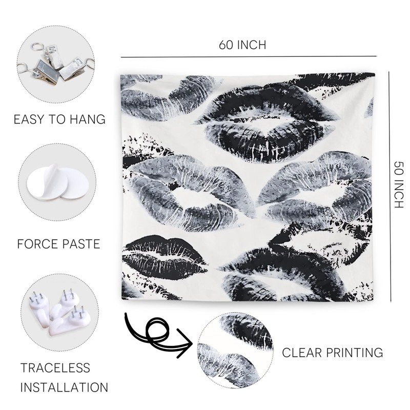 WNAGT Trendy Black and White Kiss Lips Tapestry Wall Hanging, Funky Makeup Wall Decor, Fashion Aesthetic Wall Blanket Decor for Girls Room College Dorm Makeup Room Beauty Room, 50x60 Inch