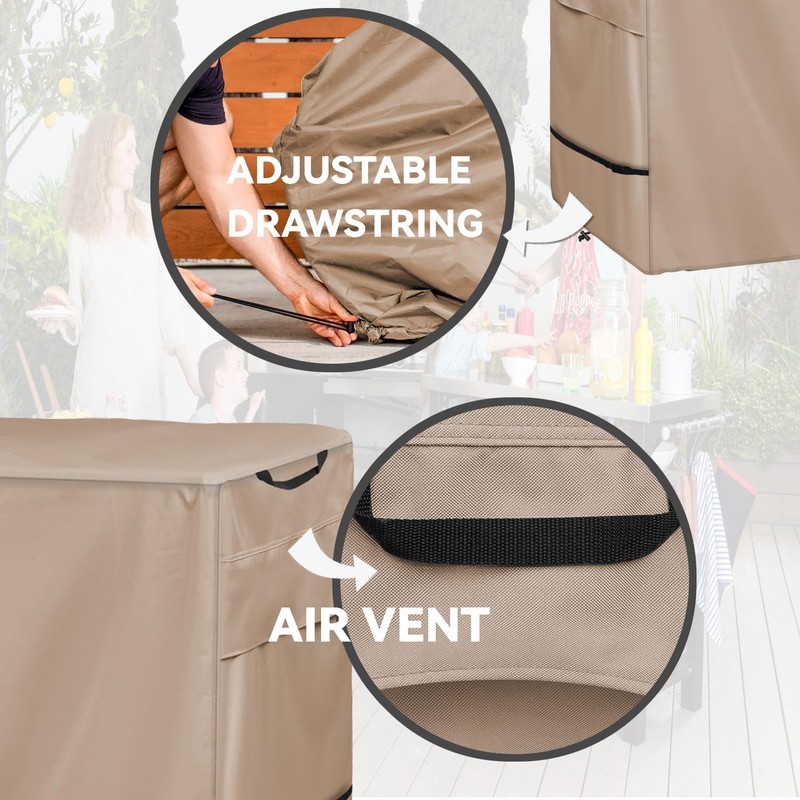 • ALL THE FEATURES - These dining cart covers for waterproof outdoor storage have been designed with air vents to reduce inside condensation and wind lofting, a windproof buckle and a Bottom drawstring.