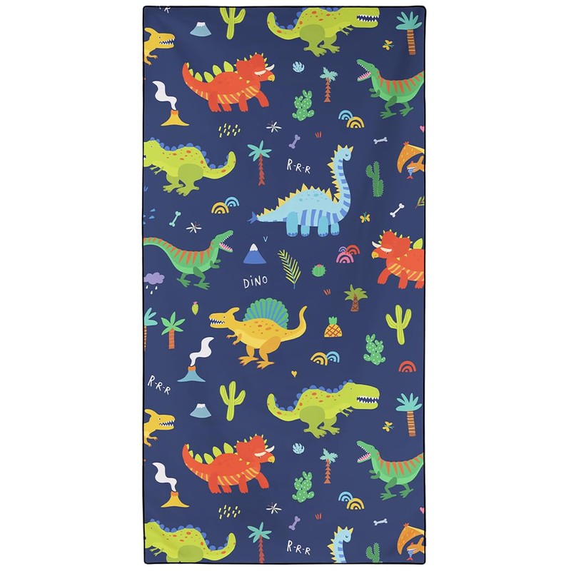 Wnntyu Printed Beach Towel 90 x 180 cm, Sand-Free & Ultralight Microfibre Towels Large, Quick-Drying Towel with Cartoon Dinosaur