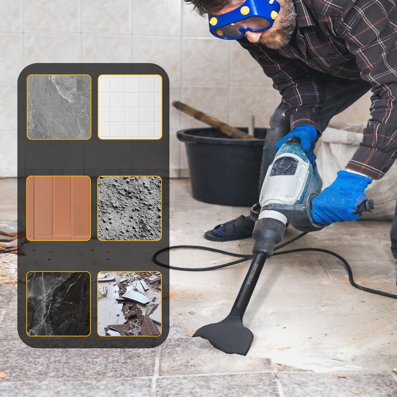 - EXTREMELY HIGH LOAD REMOVAL - 20°bent tile chisel with ergonomically angled working end,designed for easy removal of tiles from floors and walls.Also for removing formwork panels,plaster and dirt layers,as well as the removal of concrete overhangs and steel renovations.