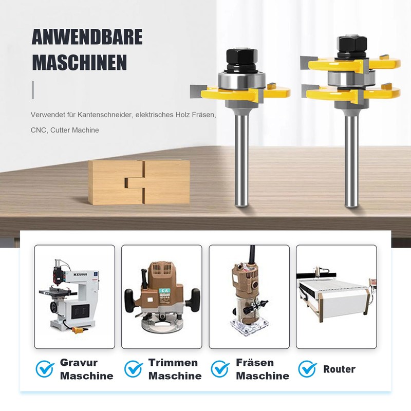 WOBLLMX 2 Pieces Groove and Tongue and Groove Set, 8 mm Shank, 3 Teeth, Adjustable T Shape Woodworking Milling Cutter Set, Router Bit Woodworking Milling Wood Cutter Tool