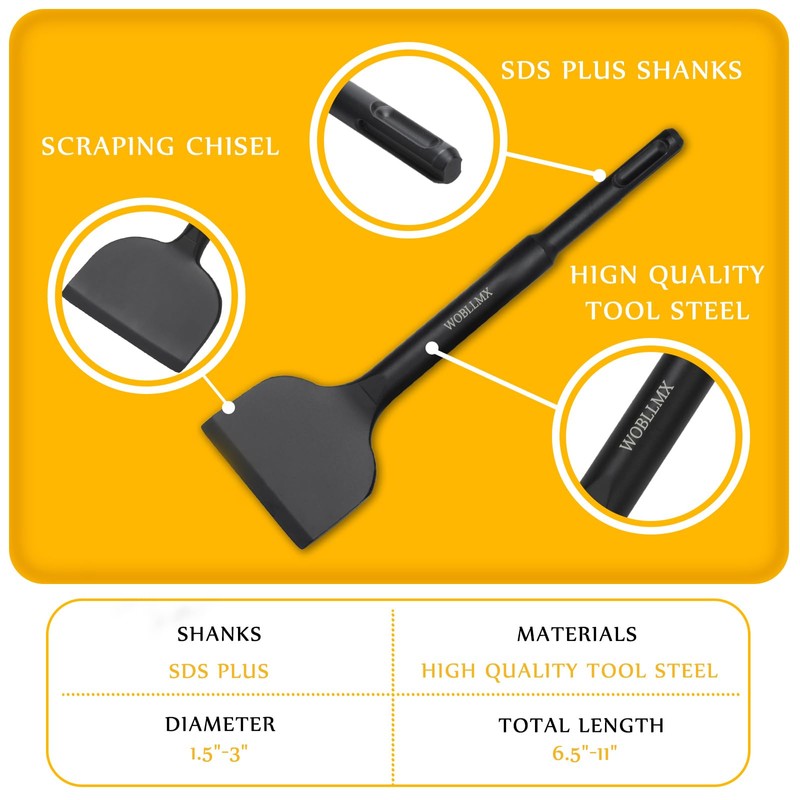 - PACKAGE INCLUDES - 1Pcs 3" x 6.5" SDS Plus Scaling Chisel for professionals and DIY enthusiasts.