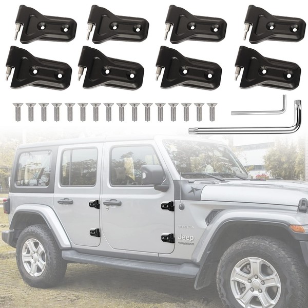 Wocch for Jeep JL Door Hinges 8Pcs Heavy Duty Black Aluminum Alloy Door Hinge Kit Replacement w/Pins Screws Tools for Jeep Wrangler JL JLU Gladiator JT 2018-2023
