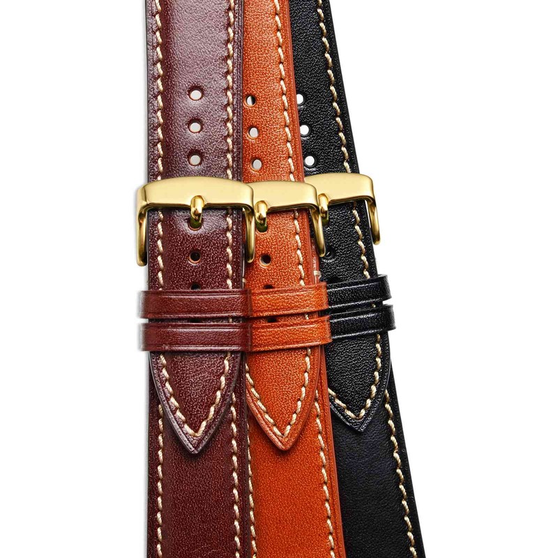 - Watch Strap Material: Made from Italian full grain vegetable tanned leather, with smooth semi-gloss finish, neat contrast stitching and lacquered edges, giving it a aristocratic appearance.