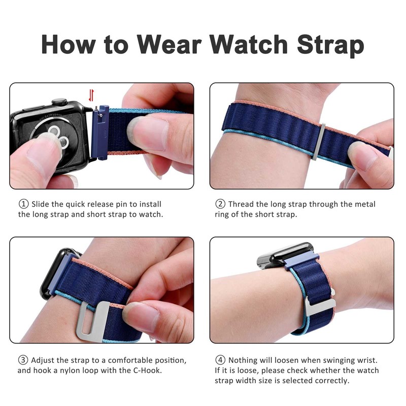 - Soft Nylon Strap: Made of skin-friendly nylon material, this watch band is lightweight, breathable, washable, and has a 304 stainless steel C-hook for easy adjustment while ensuring a secure fit.