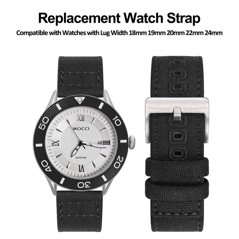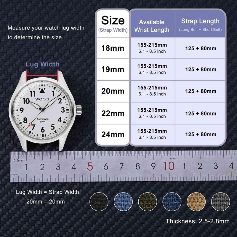 WOCCI Canvas Fabric Watch Strap, Quick Release, Compatible Watch Lug Width 18 mm, 19 mm, 20 mm, 22 mm, 24 mm, Nylon