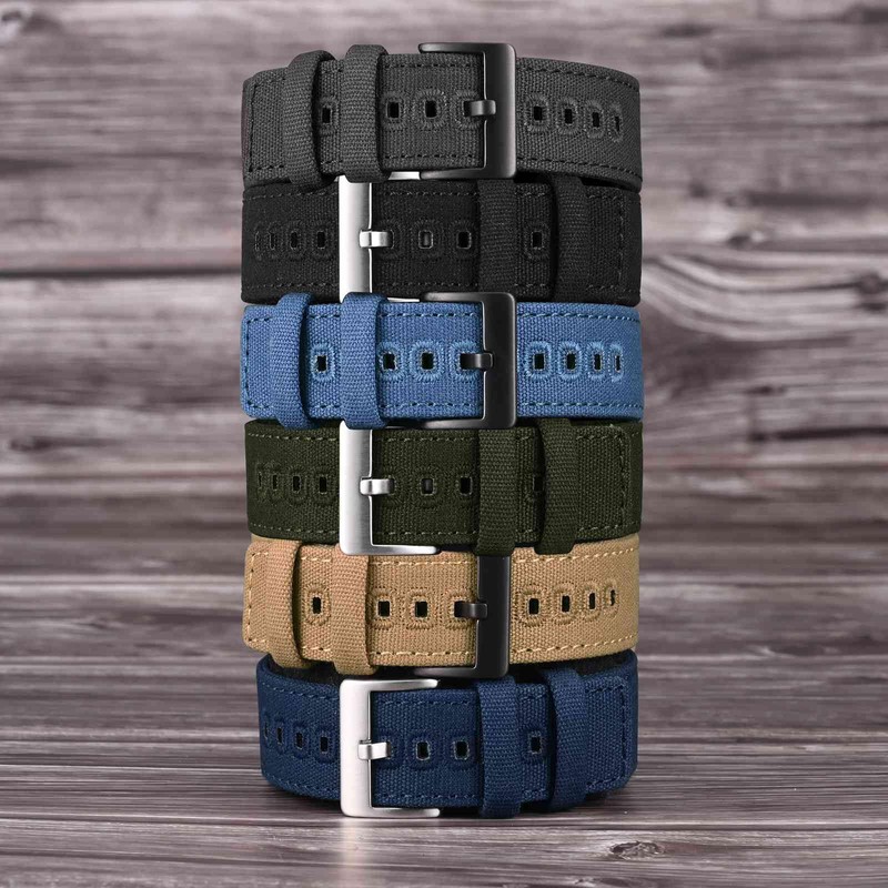 - DURABLE & BREATHABLE This collection is made of durable canvas fabric, equipped with stainless steel buckles, lightweight and durable. The fabric material of this watch strap ensures optimal air circulation and keeps your wrist cool and comfortable all day long