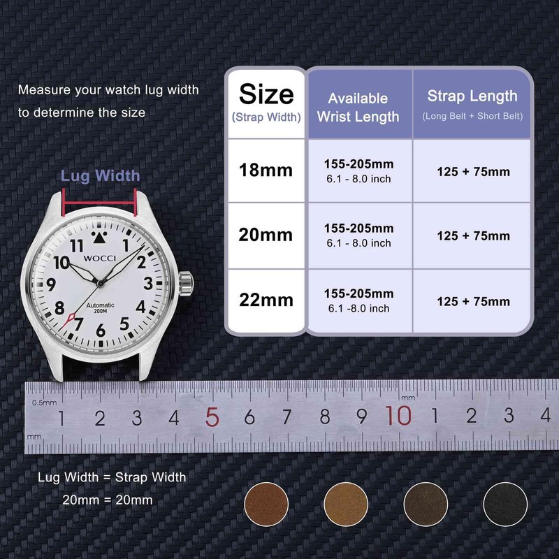 - Suitable: fits wrist around 155 mm to 205 mm (6 to 8 inches), but watch dial also impact fit. Compatible with most conventional watches and smartwatches whose stud width is 18 mm, 20 mm, 22 mm as standard