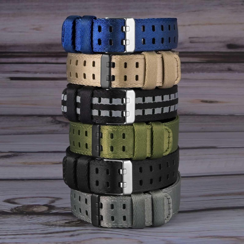 WOCCI Nylon Watch Strap, Silky Nylon Watch Strap with Double Holes, Compatible Watch Lug Width 18 mm, 20 mm, 22 mm, Nylon