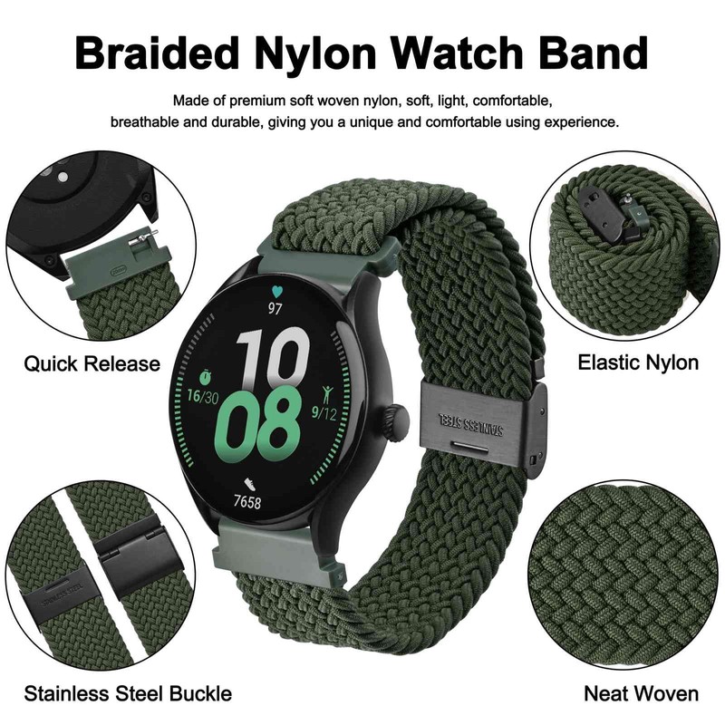 - BRAIDED WATCH STRAP This watch strap is made of high quality stretchy yarn interwoven with silicone threads, with adjustable buckle, soft, lightweight, breathable, washable, durable and comfortable to wear. Perfect for sports and everyday use.