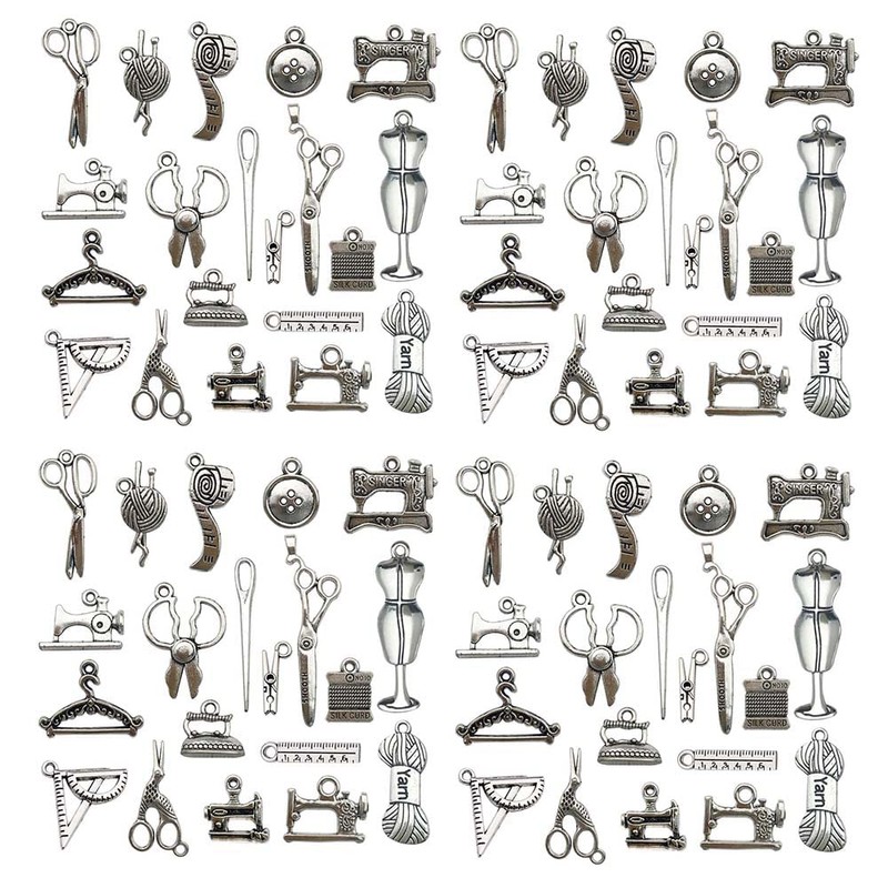 WOCRAFT 120pcs Antique Silver Sewing Tool Charm for Jewelry Making Alloy Sewing Charms for DIY Crafts (SN049)