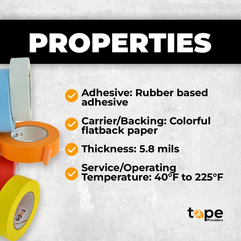 - Clean Removal with Strong Adhesion - This paper masking tape features a natural rubber adhesive that sticks securely to most clean surfaces with minimal pressure and removes without leaving residue. Ideal for use on walls, floors, rugs, and painted surfaces.