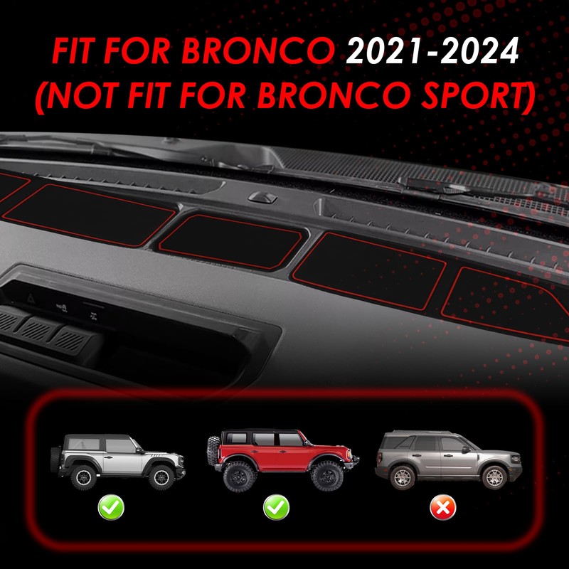 WODHMIEY 3Pcs Silicone Dash Cover Tray Anti Slip Dashboard Mat Insert Liner, Stylish Fit for Bronco 2021-2024, with Unique Non Slip Texture, for Interior (Red)