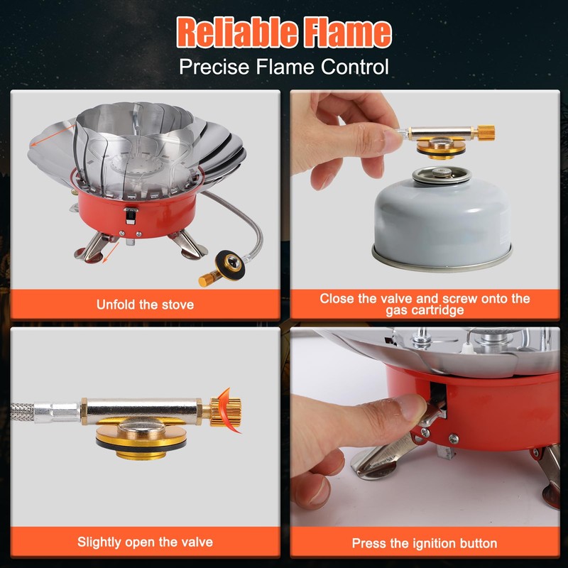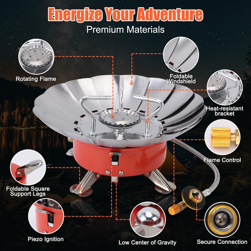 - [Powerful & Efficient] This camping stove provides up to 3500W of high heat for fast and efficient cooking. The 35cm extended hose keeps the gas cylinder at a safer distance.